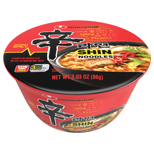 Shin Ramyun Big Bowl took the success of Shin Ramyun Cup Noodle and made it bigger. The Big Bowl offered its same premium flavor to those with big appetites. The Shin Big Bowl has the same lasting qualities provided by Shin Noodle history.